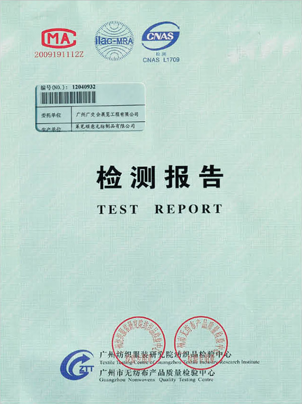• 本公司生產的無紡阻燃地毯檢測合格